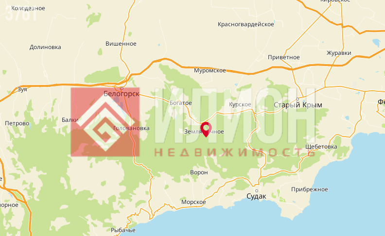 Село Земляничное, до Белогорска 15 минут на машине, до Судака 30 минут. 1км от основной трассы Судак-Белогорск.