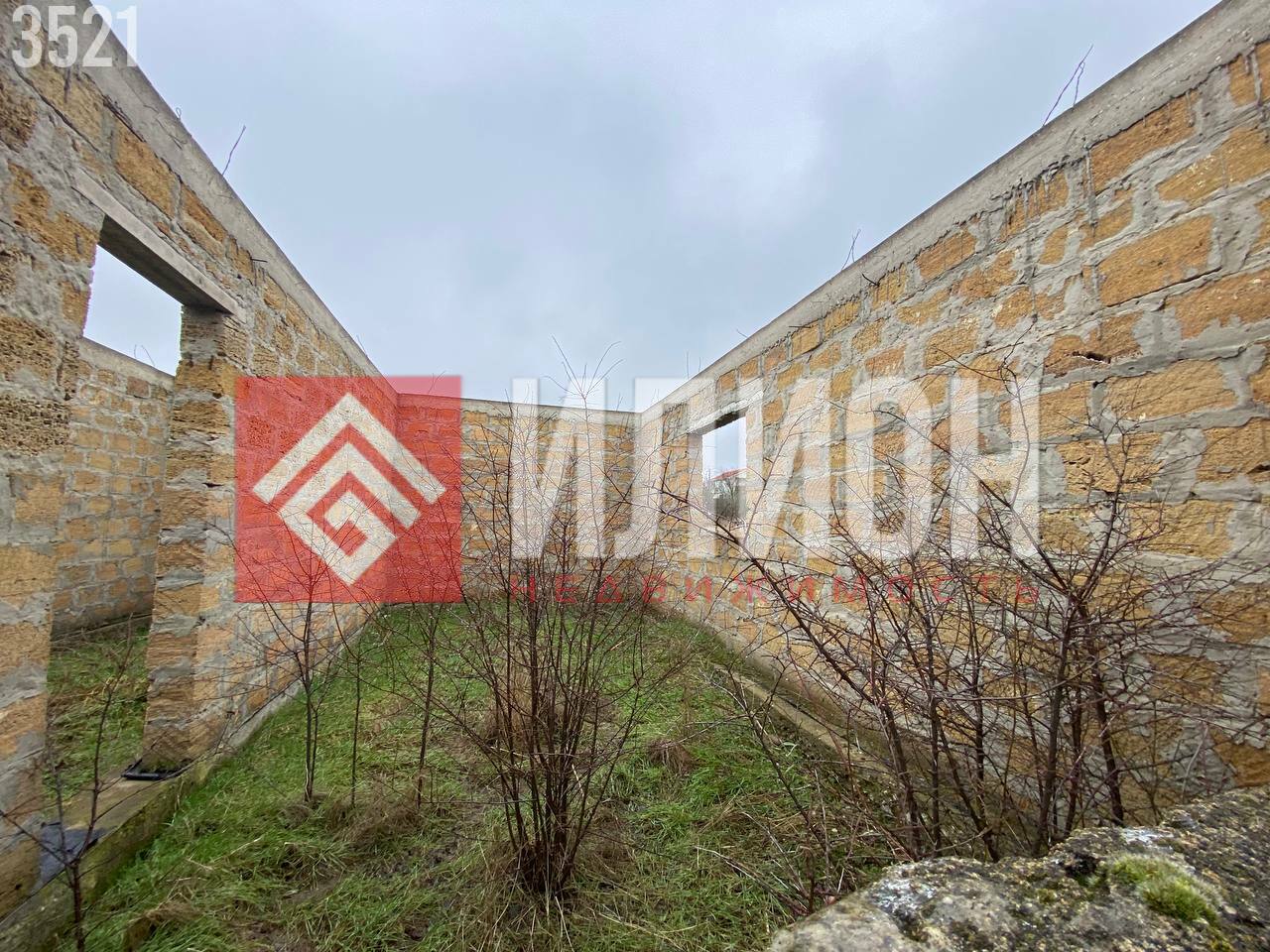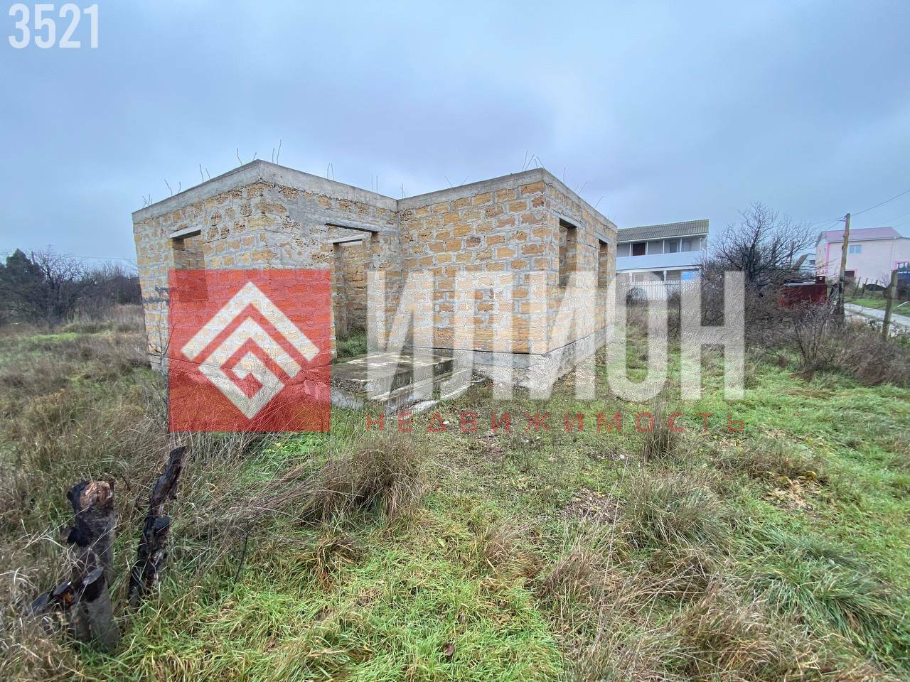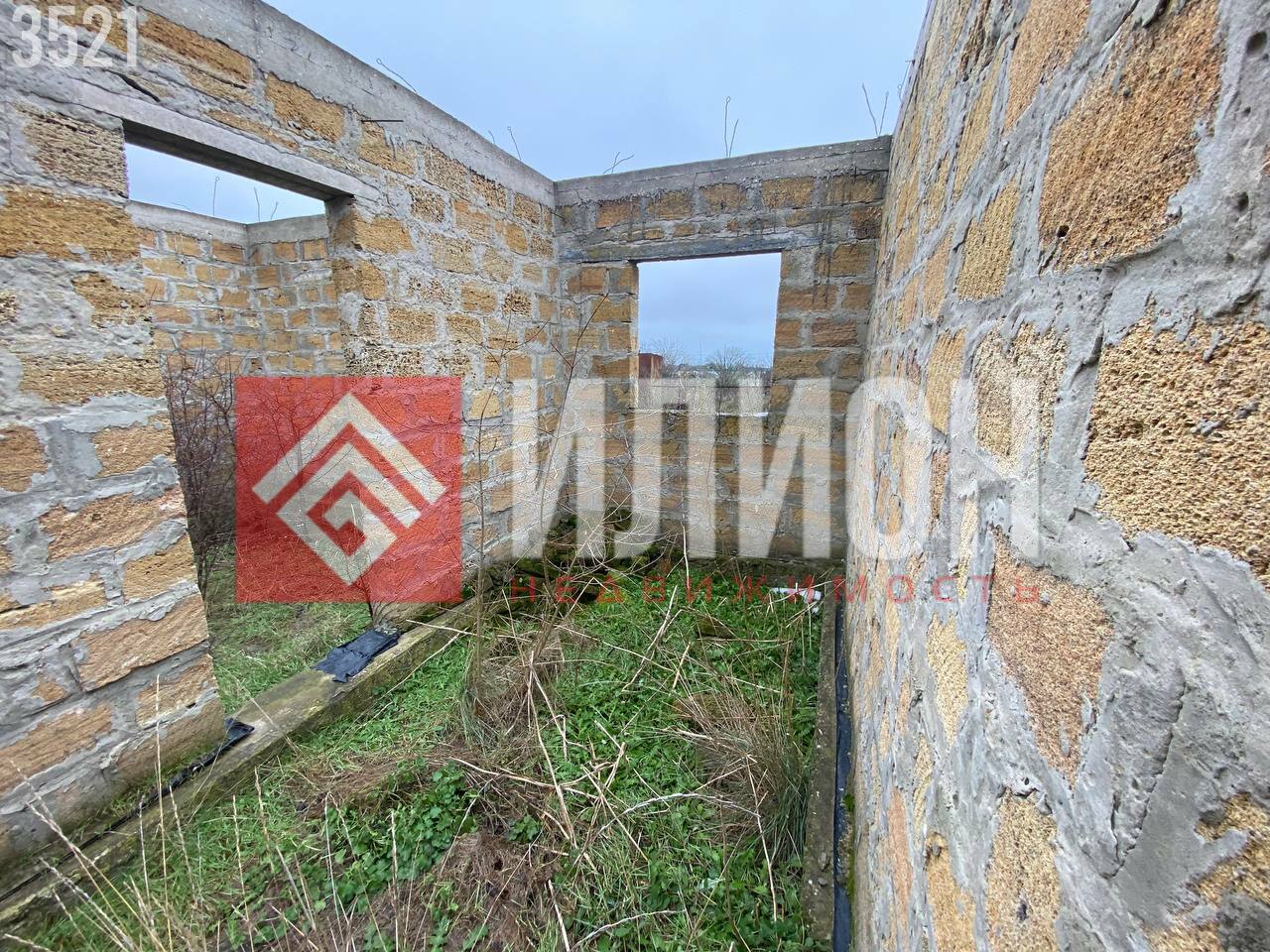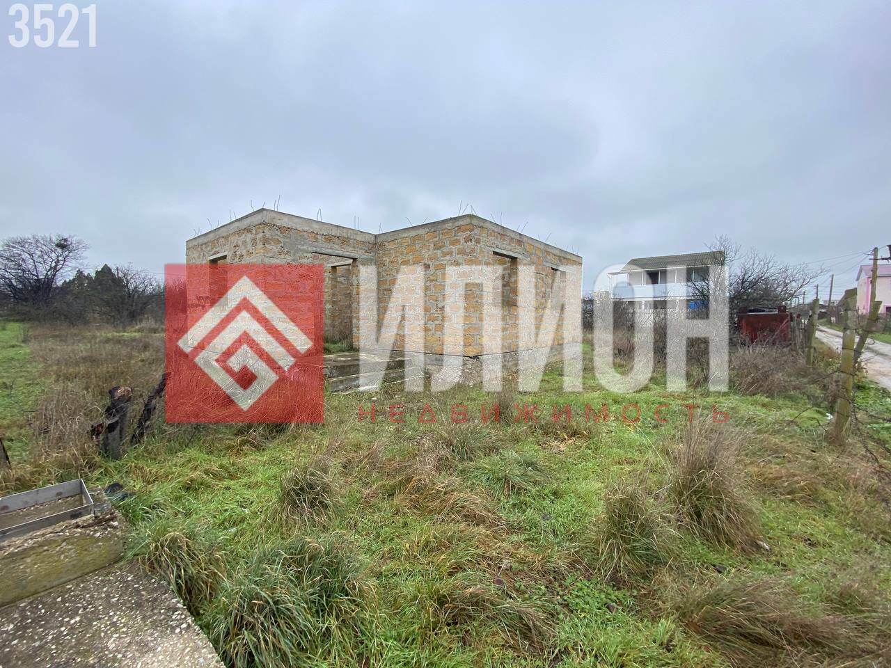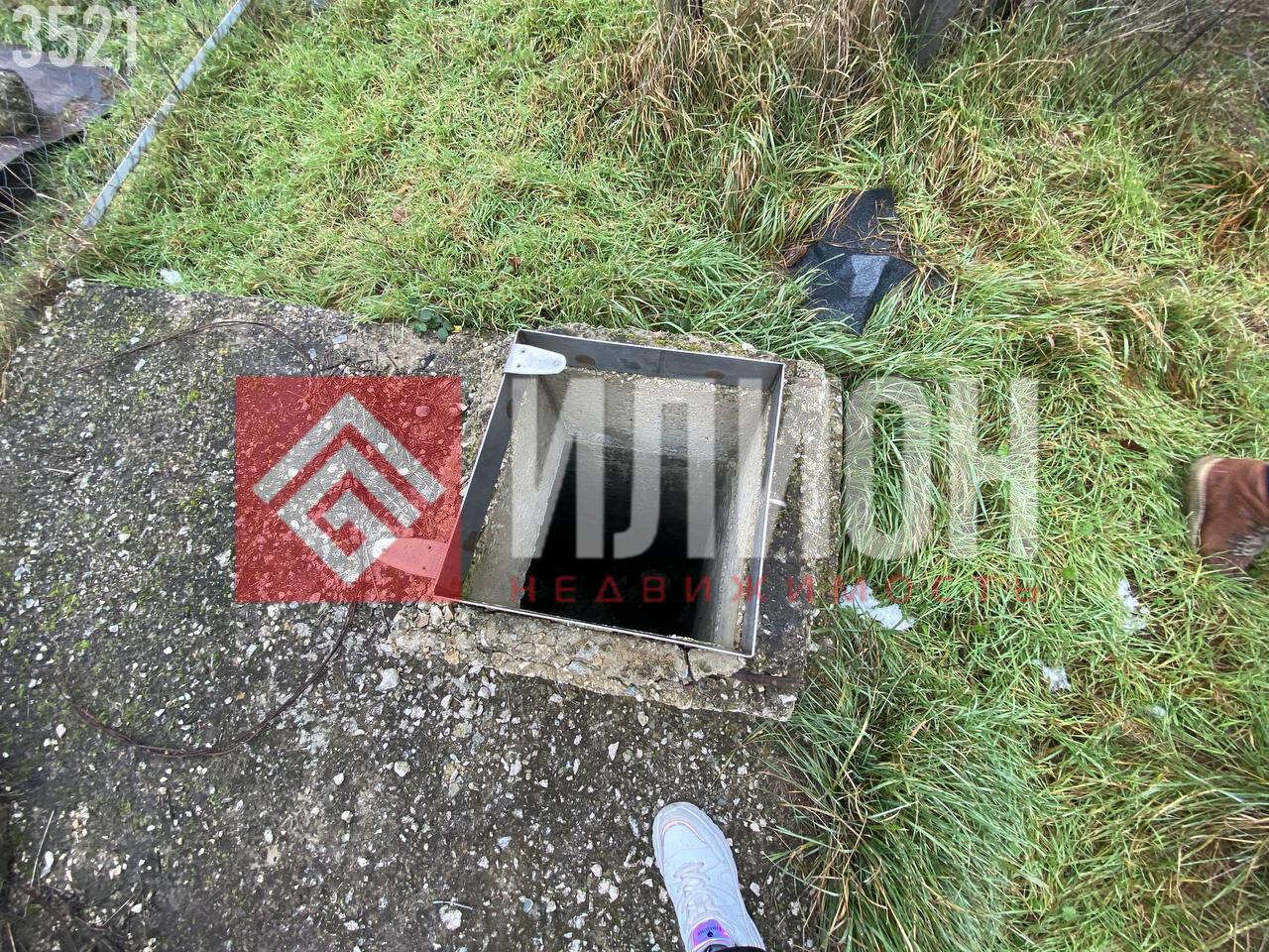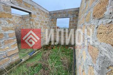На участке минимум деревьев, что позволяет легко организовать пространство. Здесь построена капитальная коробка дома площадью примерно 60 м², которую можно достроить под ключ всего за пару месяцев с умеренными вложениями. Также имеется зарытая бетонная ёмкость (~7 м × 3 м) для септика и небольшой хозблок.